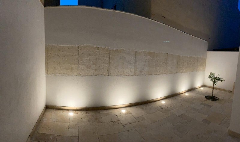 La piedra utilizada garantiza aislamiento térmico natural, manteniendo el interior fresco en verano y cálido en invierno. Su textura con fósiles marinos y su color dorado crean un ambiente acogedor y sofisticado, ideal para villas, jardines, arcos y espacios exteriores.